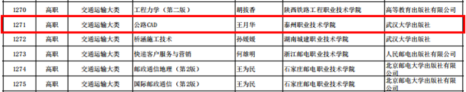 近日,从中华人民共和国教育部网站获悉,教育部办公厅于2020年12月8日公布了“十三五”职业教育国家规划教材书目,我院有幸入选4部,分别是路桥教研室王知乐老师主编的教材《路桥养护技术》、孙舒老师主编的教材《路桥工程检测技术》、王月华老师与叶伟老师共同主编的教材《公路CAD》、王月华老师主编的教材《公路工程监理》。这在全国各大院校都难得出现的好成绩,在同一个分院同一个教研室能一次性取得这样喜人的成绩,更是凤毛麟角。