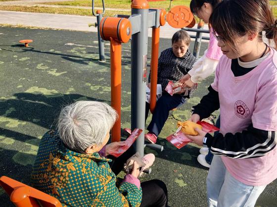 为弘扬中华民族尊老敬老的传统美德,并积极响应建设清朗网络空间的号召,2025年10月29日,在泰州市委网信办的指导下,泰职院智药院丹心闪“药”与城建院“小鲁班”网络志愿服务队携手走进海陵区城南街道莲花四号区,共同开展“情暖重阳 e路相伴”网络主题志愿服务活动。