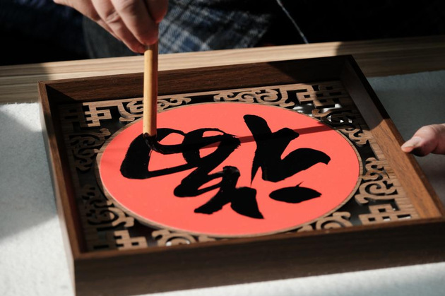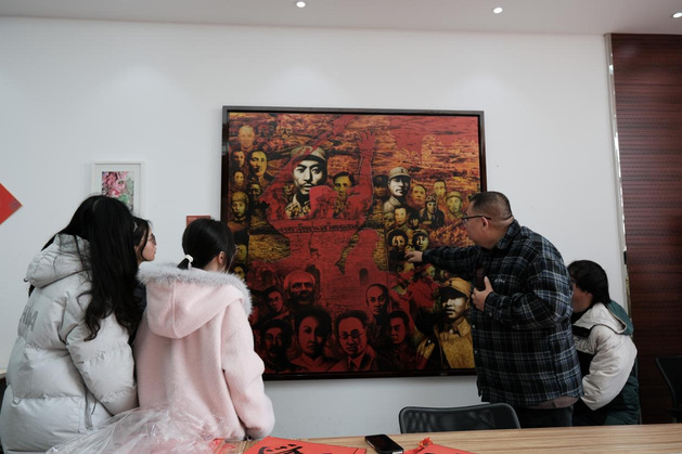 活动现场墨香四溢、暖意融融。大红宣纸整齐铺展,笔墨砚台一应俱全,学院团委、关工委教师代表与晨晓书法文学社的同学共同组成的“送福小分队”凝神挥毫,将对新年的祝福与对家国的热爱融入笔端。活动过程中,城乡建设学院关工委常务副主任杨政老师结合自己的漆画作品《史诗印跡》创作内容和经历,向在场学生讲述革命历史与时代发展故事,引导青年学子在笔墨书香中感悟历史厚重、坚定理想信念。