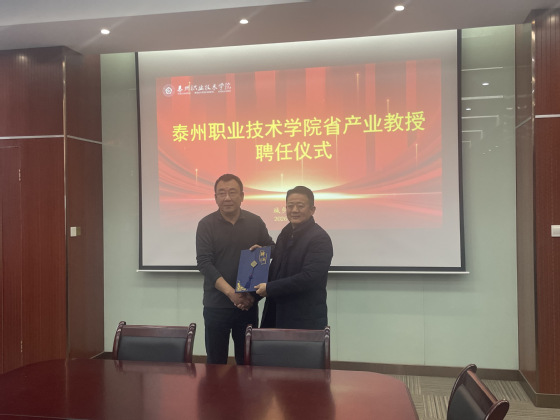随后,现场举行了庄重的江苏省产业教授聘任仪式。石泉彬院长为张志强总经理颁发产业教授聘书,聘任其为学院产业教授。此次聘任旨在借助企业专家的行业经验与技术优势,助力学校人才培养模式改革,提升专业教学的针对性与实效性。
